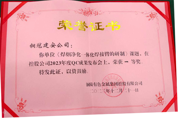 集团公司QC成果一等奖