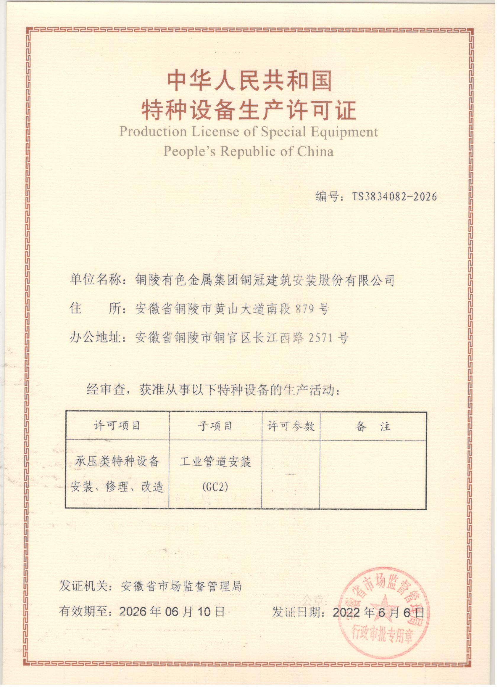 特种设备安装改造修理许可证-压力管道